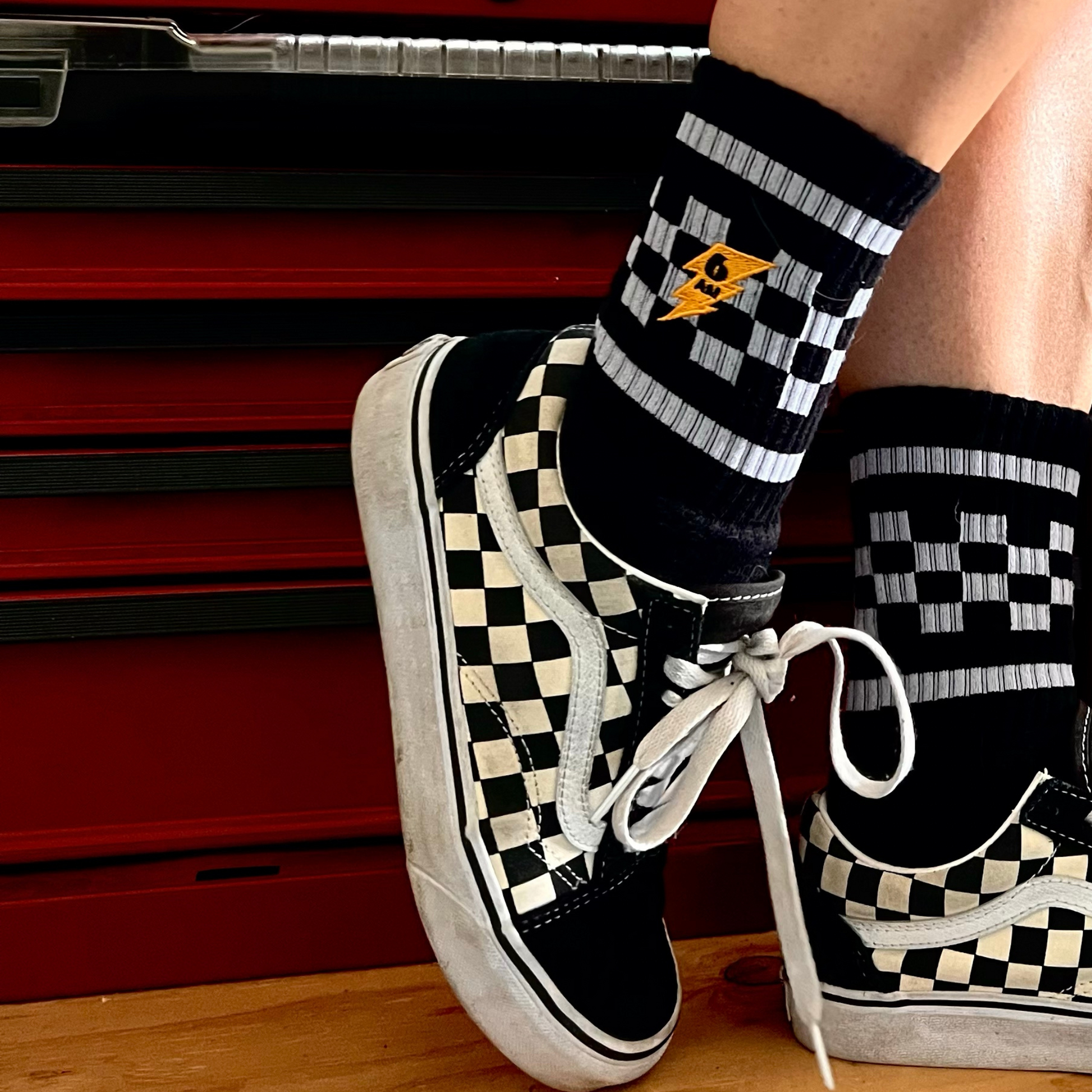 Our *LIMITED EDITION* 6AM CHECKED OUT crew socks are here for a good time, but not for a long time. Take them with you on your next trip, for a drink at your local dive bar, or out to a rock show. But whatever you do, add to cart and check out quick as these throwback goodies are sure to sell out lightening fast.⚡